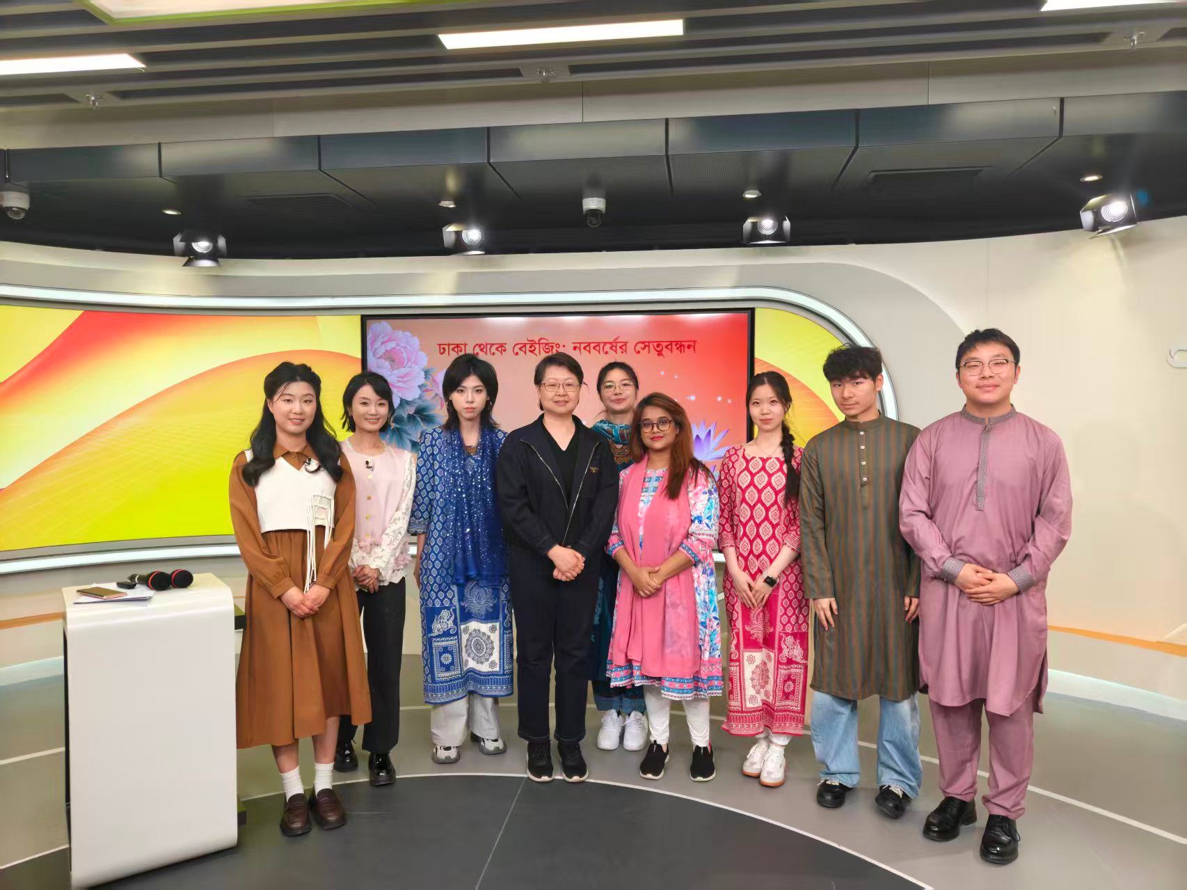 孟加拉语专业师生做客中央广播电视总台孟加拉语部直播间,参与特别节目《新年交流:从达卡到北京》录制。学生们通过精彩的表演与真挚的分享,与达卡演播室联动,以青春视角和语言为桥,向孟加拉国人民传递了来自中国的新年祝福。